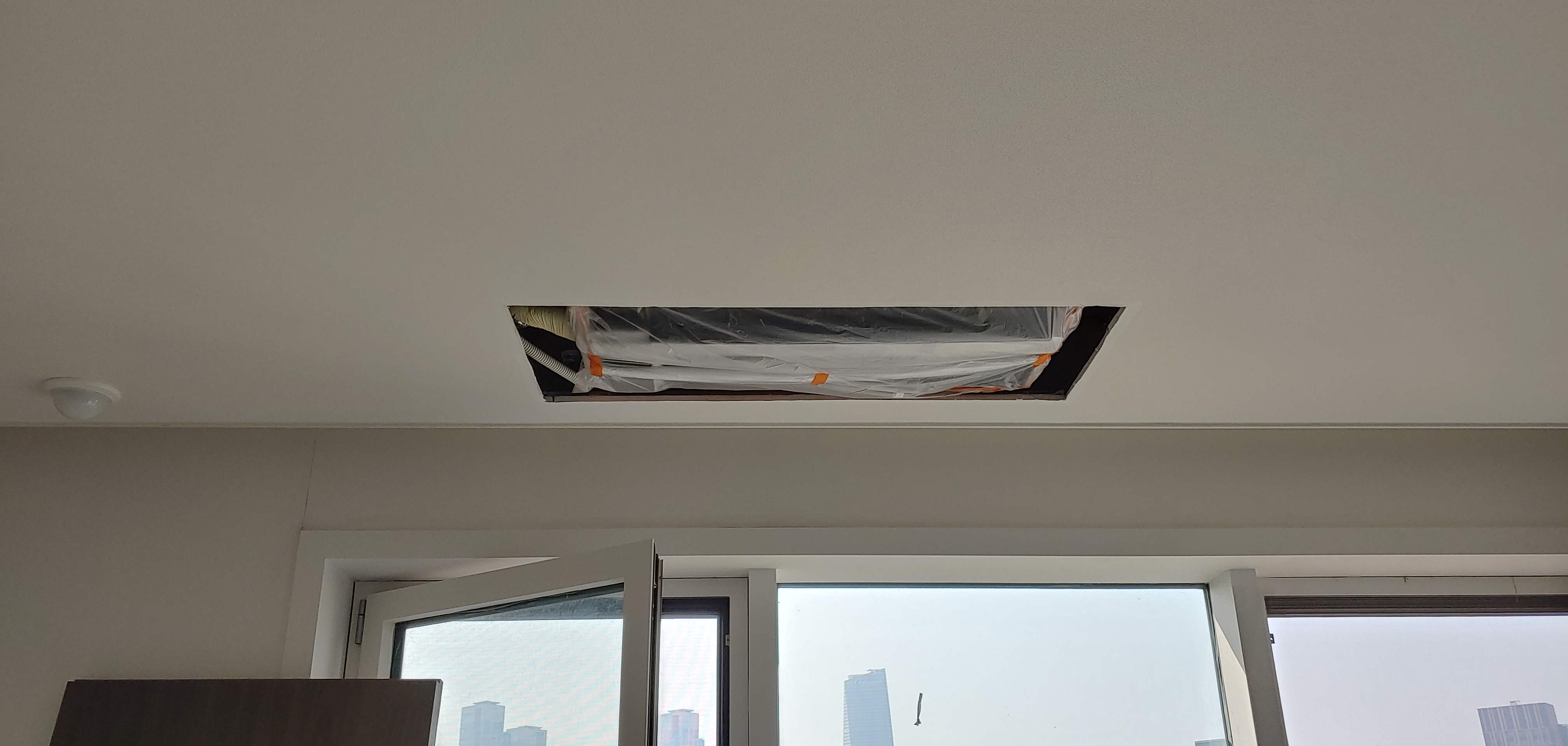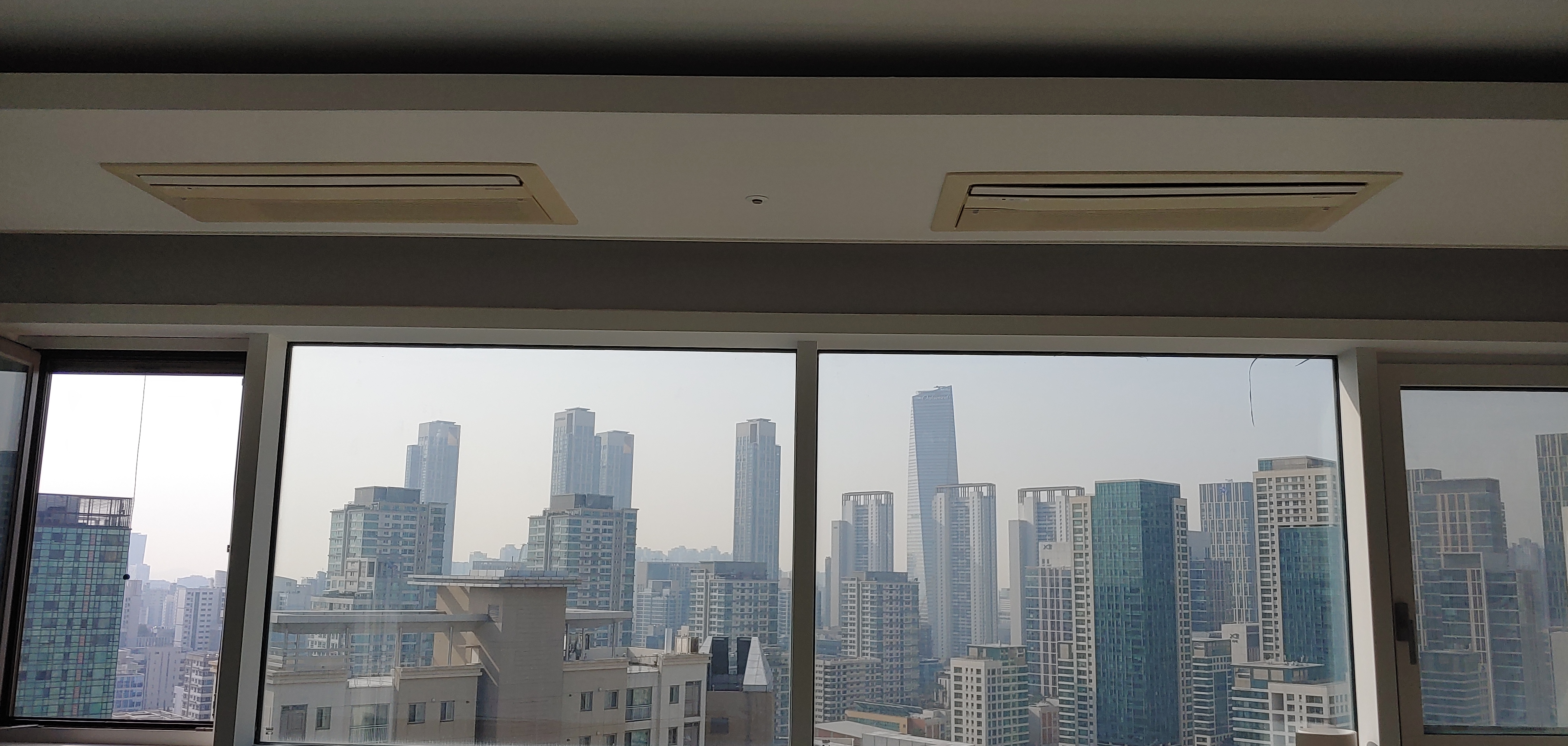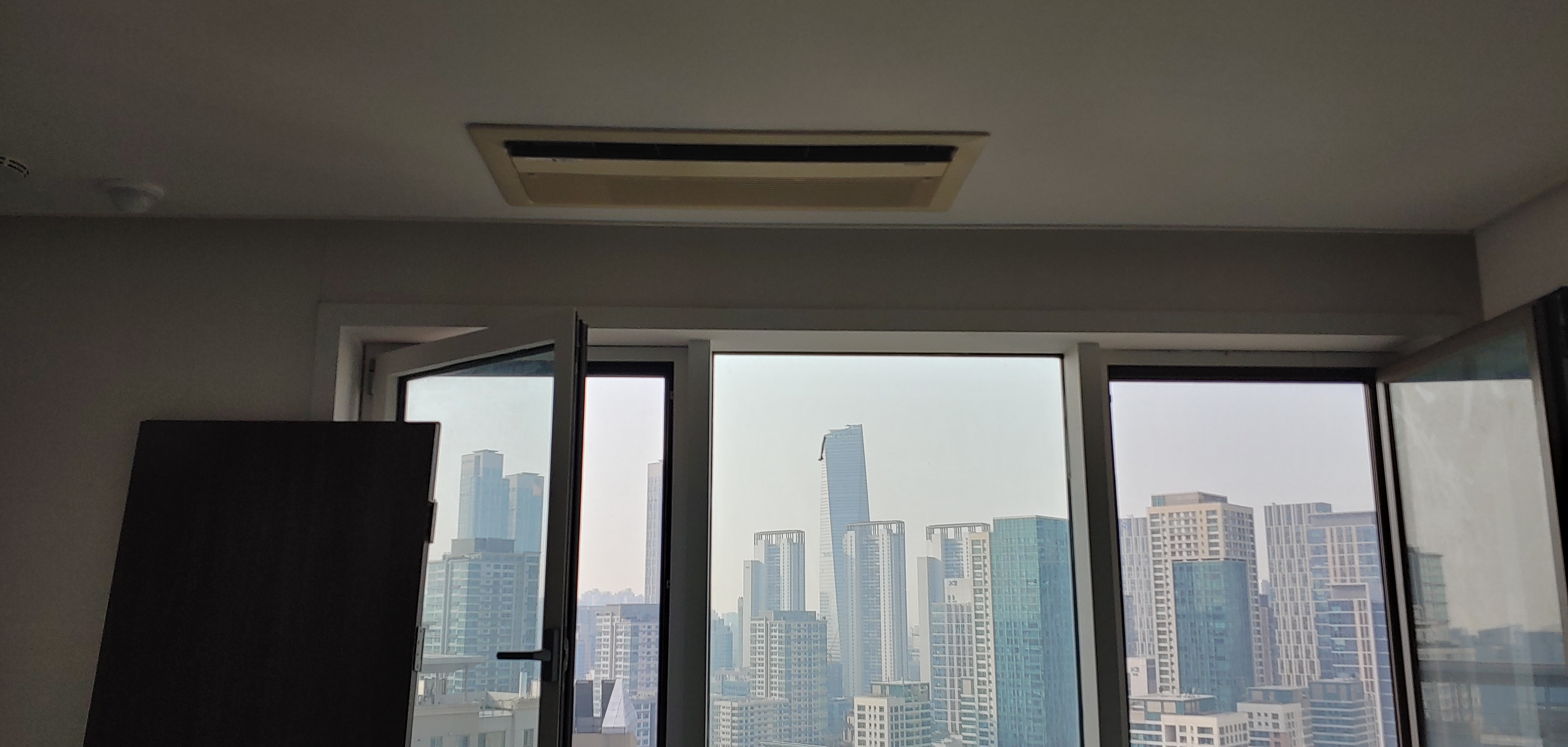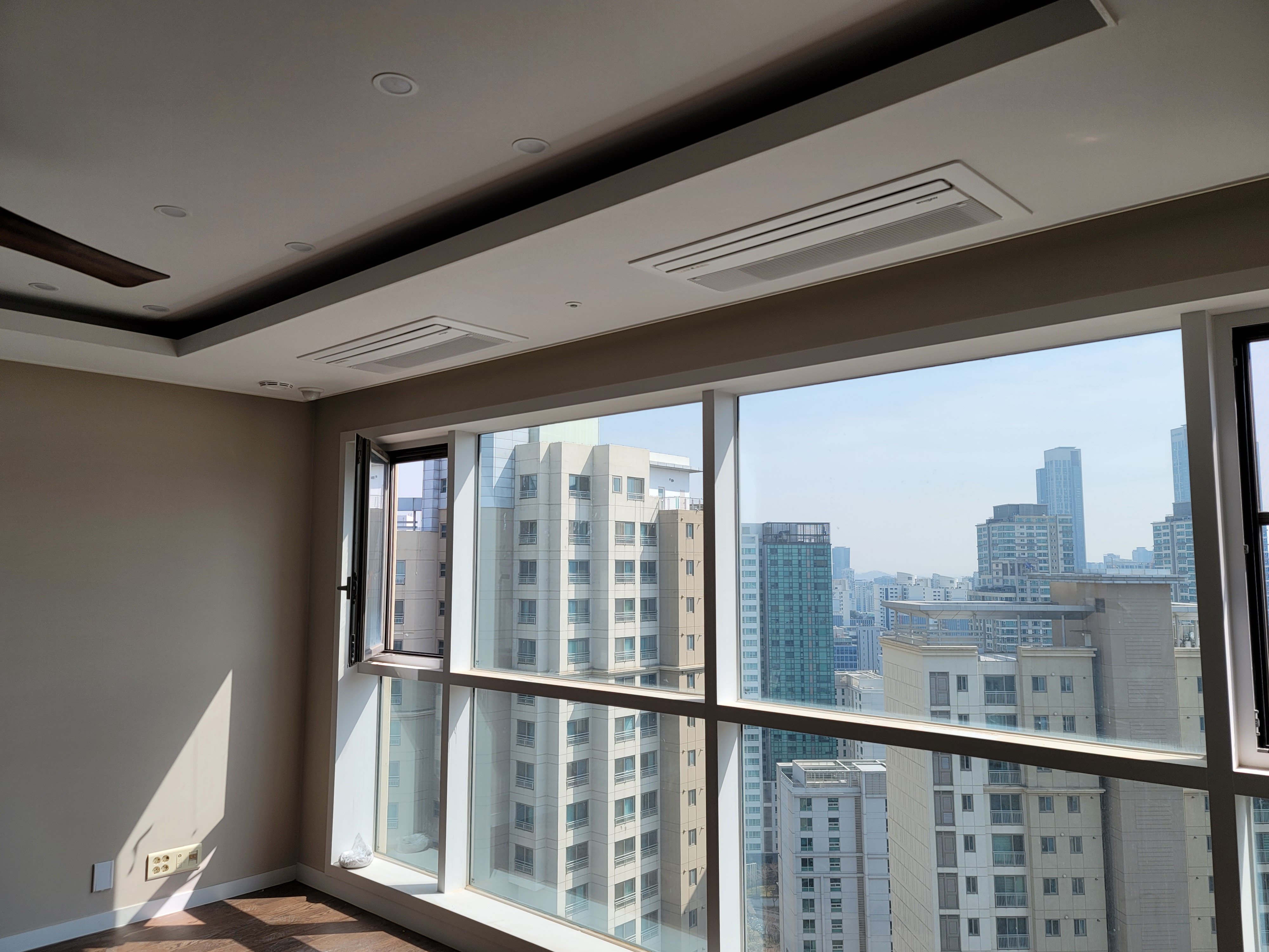 천정에 매립시공되어 에어컨 가동상태