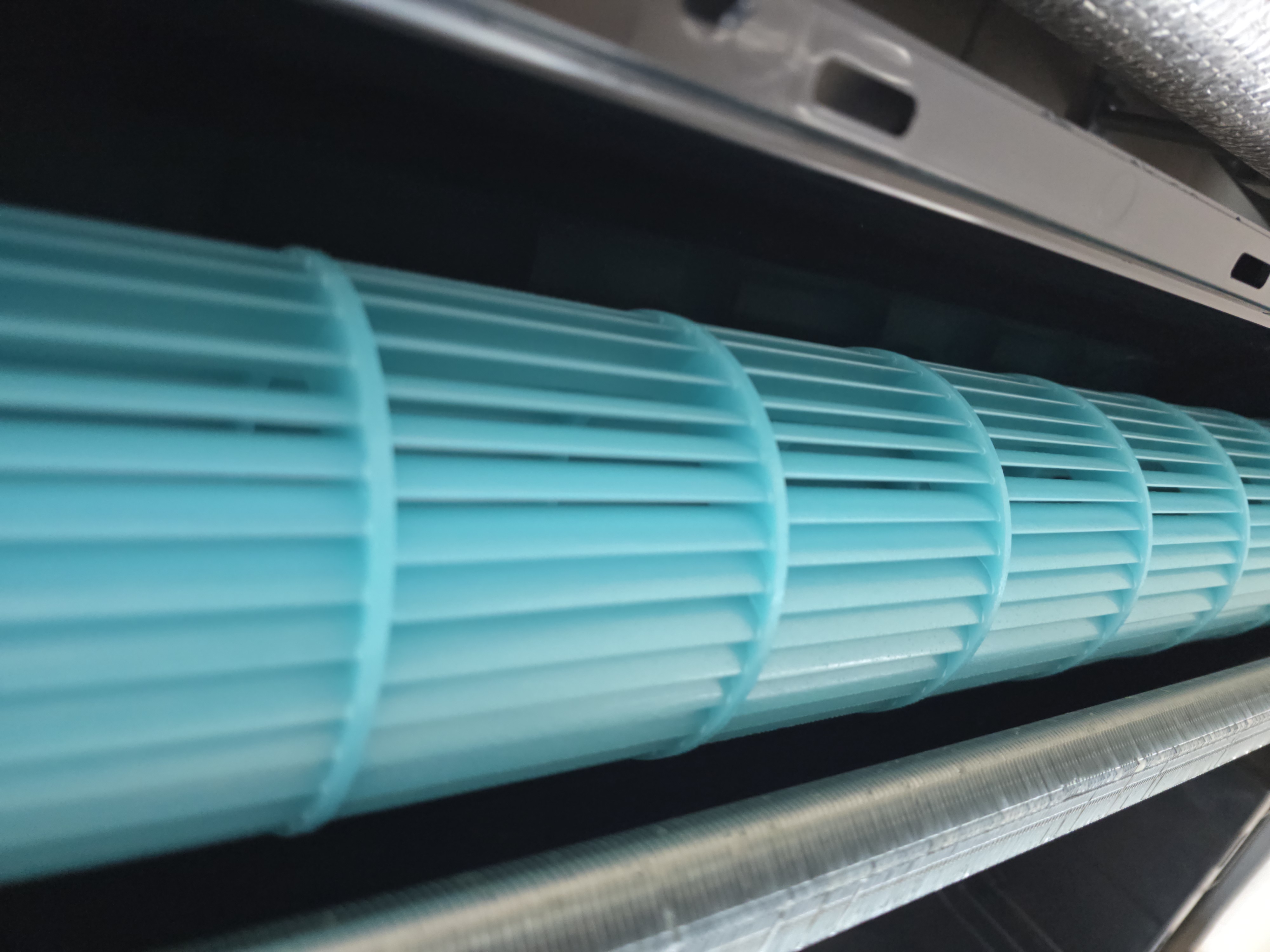 에어컨 도색 후 고급스러운 색상과 깨끗한 표면 상태, 균일하고 규격에 맞는 도장막, 굽는 (bake) 방식 열도장으로 페인트 떨어짐 현상 없는 에어컨 도색