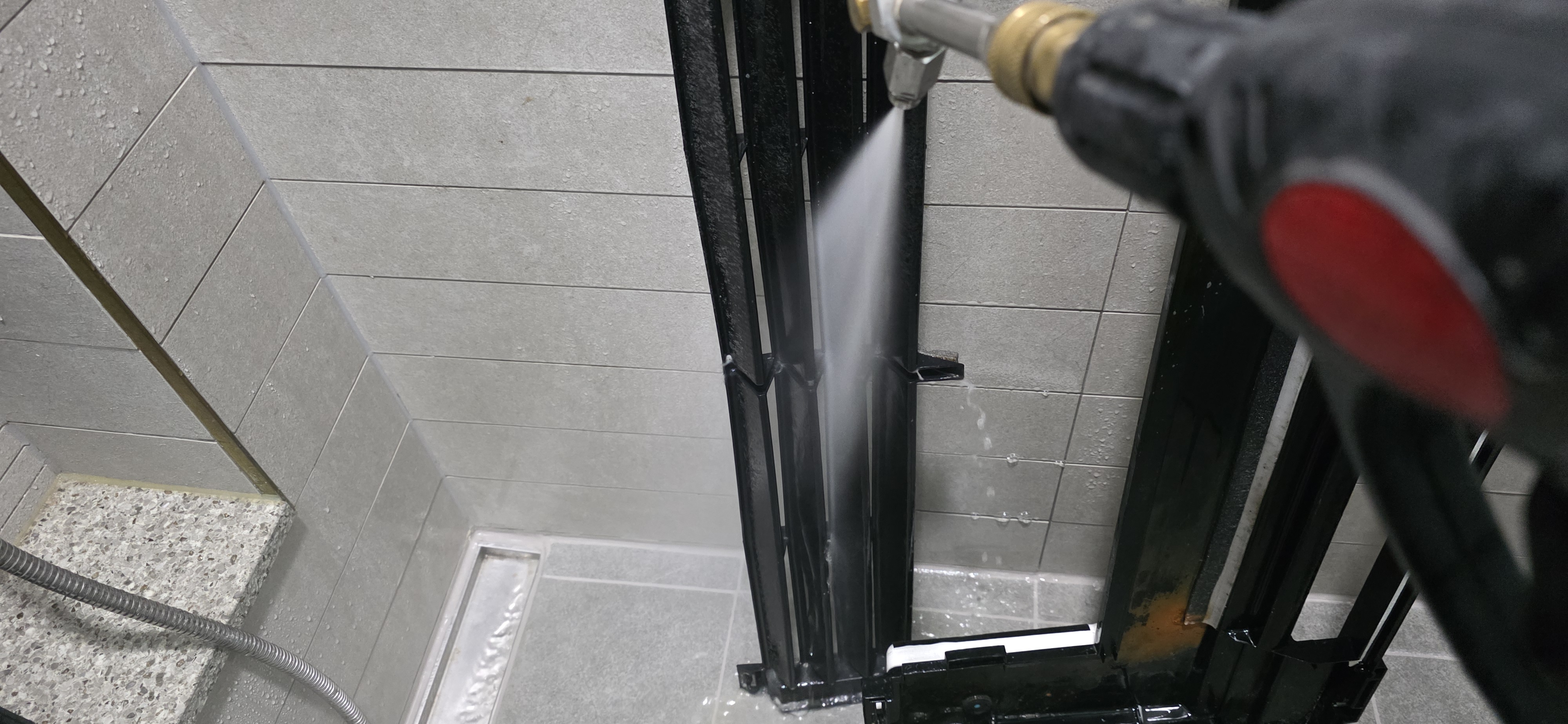 구조에 기반 오염 요소를 고압 세척
