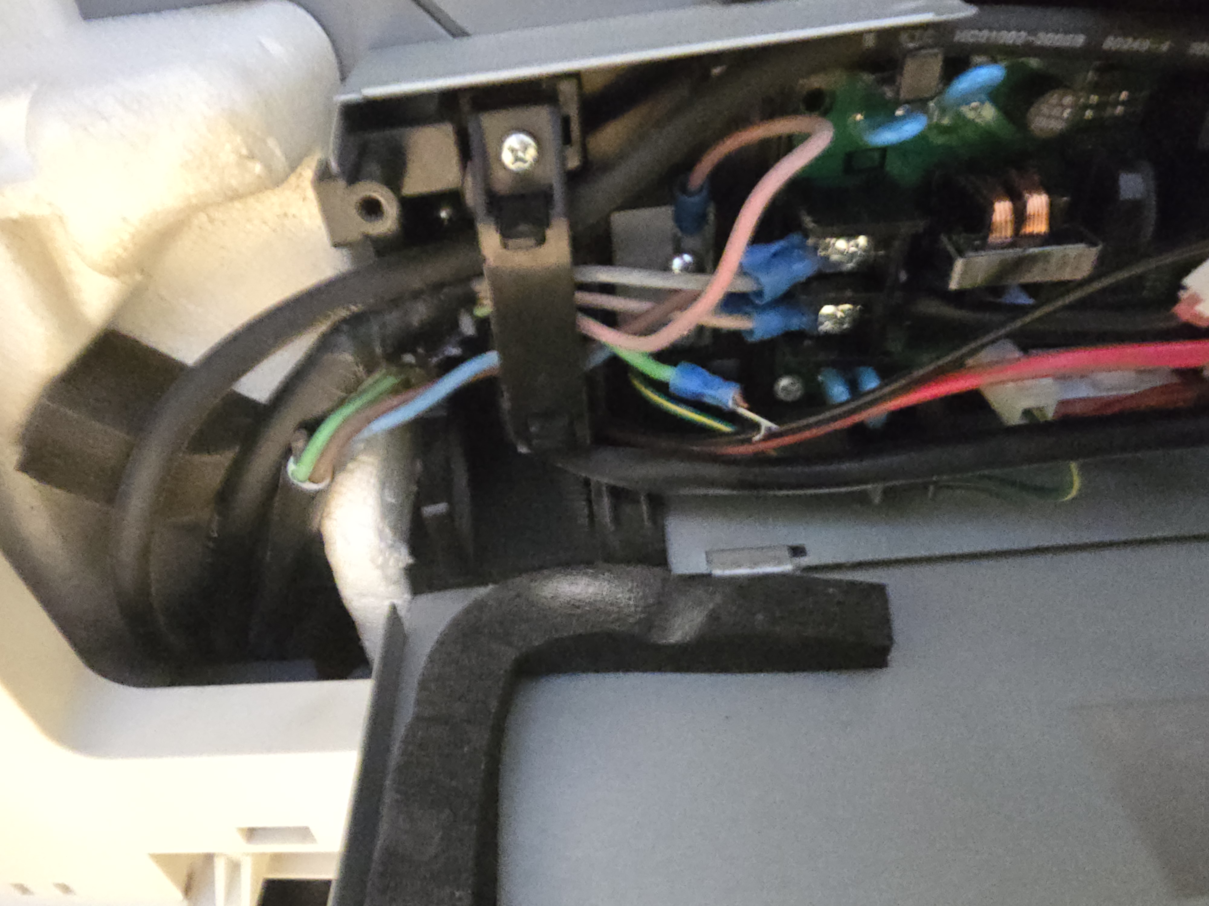 전원선 터미널 단자와 연결부위 마감이 불완전한 상태였습니다.